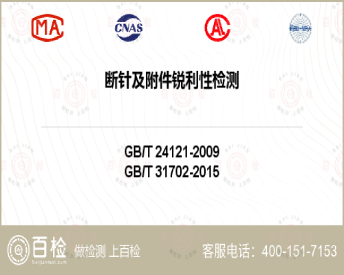 斷針及附件銳利性檢測標準具體有哪些?斷針及附件銳利性檢測標準以及服務(wù)費用具體詳情。檢測項目:紡織品及其制品pH值,做斷針及附件銳利性檢測就上百檢網(wǎng)。